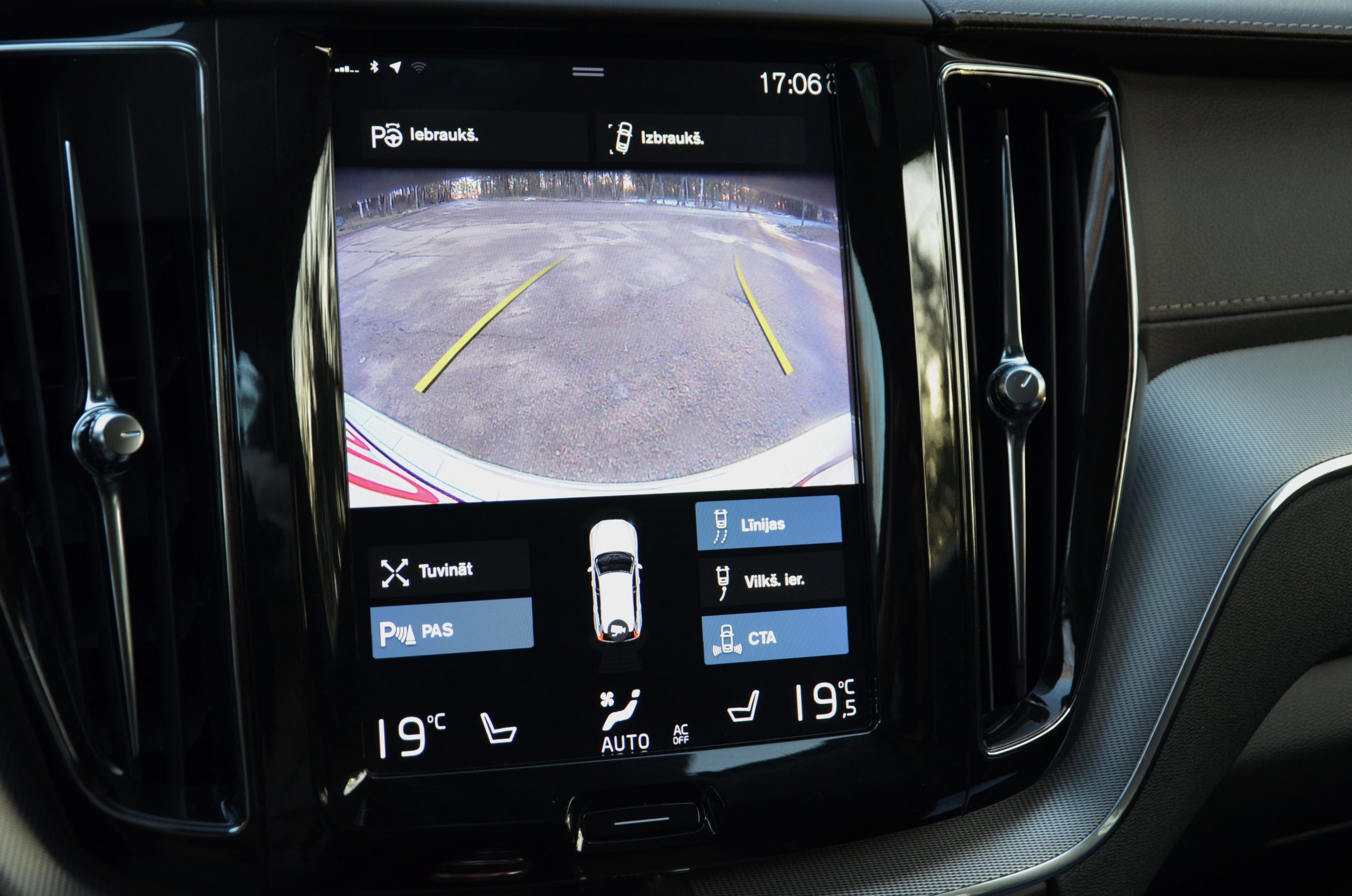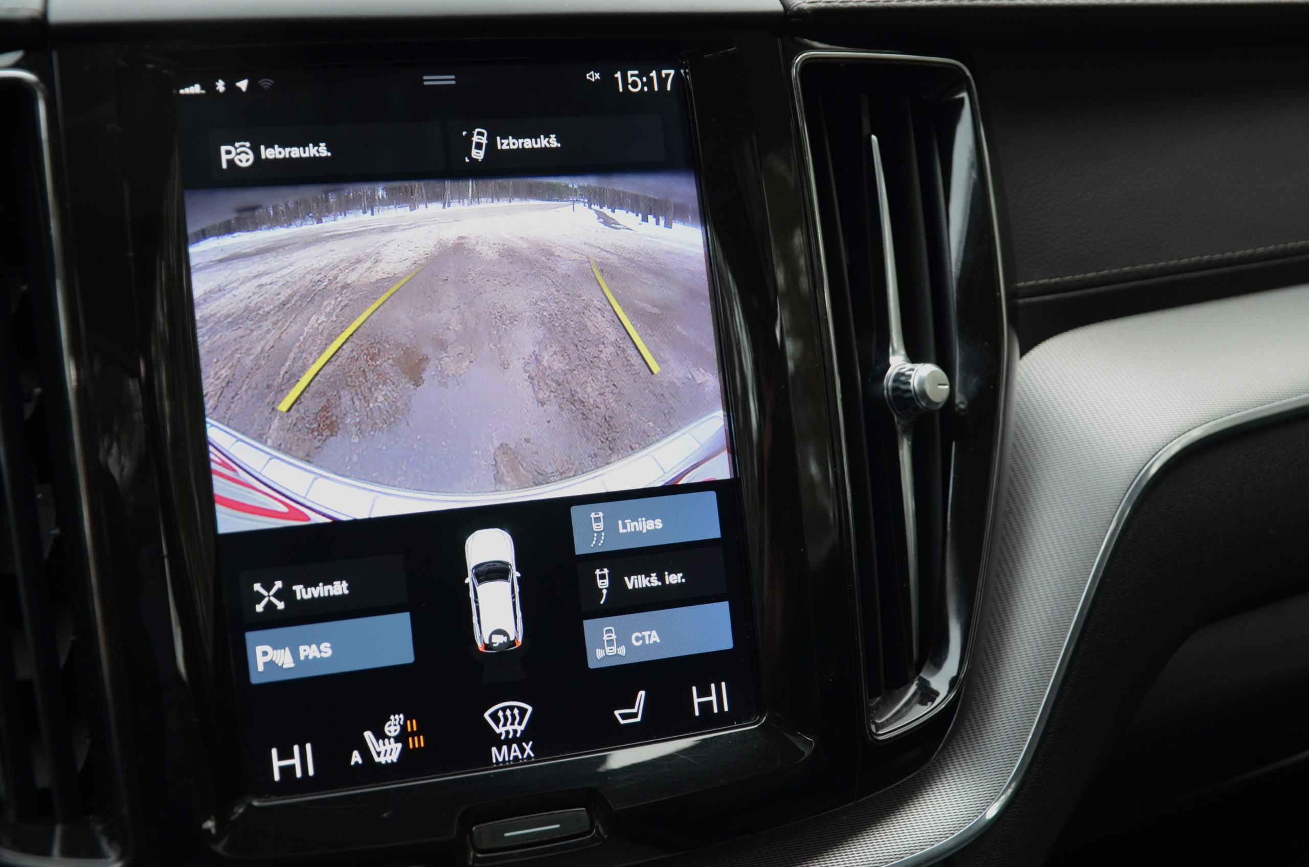 Parkošanās sensori priekšā un aizmugurē ar attēlu ekrānā.